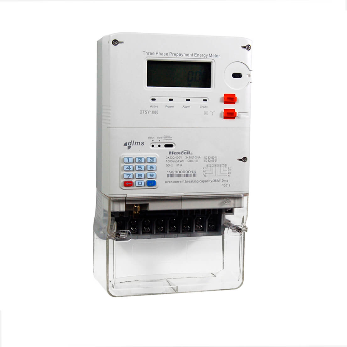 El medidor de teclado trifásico tipo integrado D T SY1088 mide la energía activa total. Tiene certificación STS y cumple con los estándares IEC62052, IEC62053, IEC62055, IEC62056, etc. La Unidad de medición y control (MCU) cumple con el estándar BS y se puede instalar en la caja del medidor para evitar una operación no autorizada.